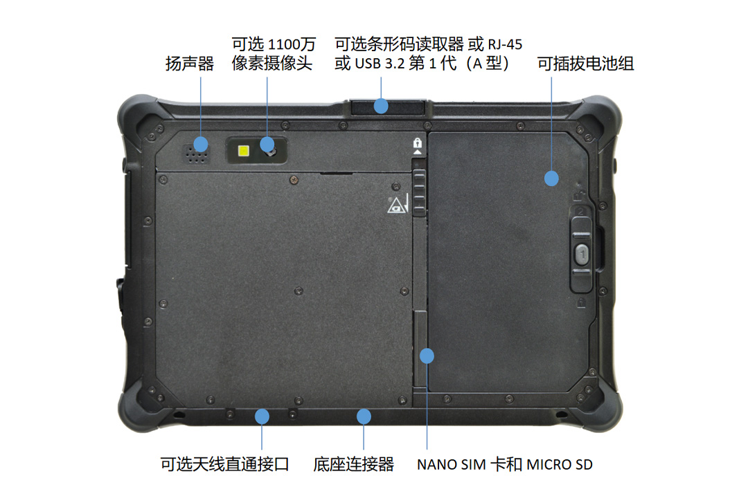 | 镁合金机架 端口盖 阳光下可读显示屏 电池交换技术 (可选) |